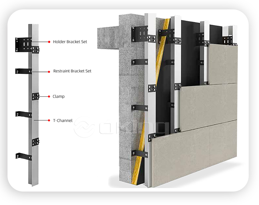 ●Este sistema de fachada ventilada rompe con fuerza porque ofrece soluciones de rápida instalación y flexibilidad en la resolución de puntos singulares. Dispone de perfiles verticales y diferentes clips que permiten anclar la pieza de diversas formas, cubriendo cualquier necesidad que pueda surgir durante el montaje.