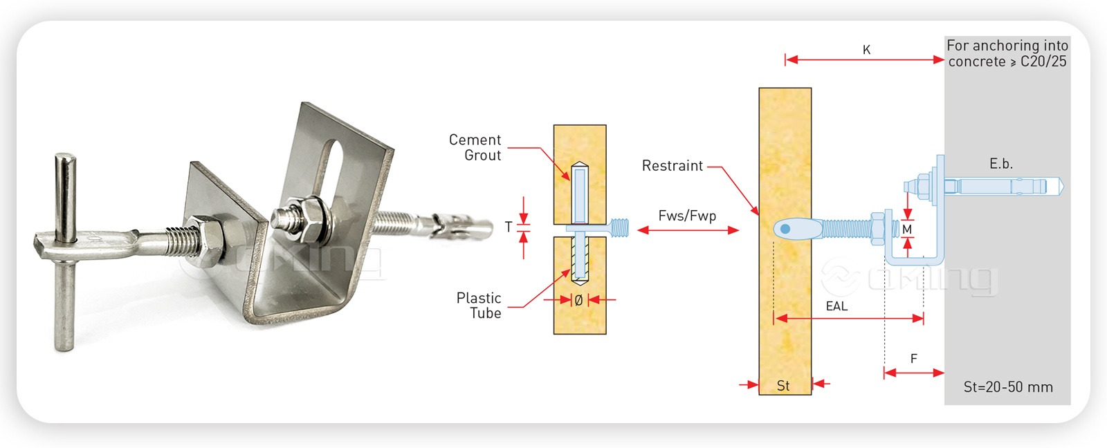 | K(mm) | K-(mm) | K(mm) | F(mm) | Fwp (N) | Fws (N) | Eb(mm) | ф (mm) | M(mm) | T (mm) | EAL(mm) | |