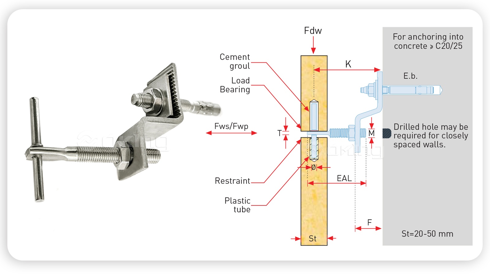 | K(mm) | K-(mm) | K(mm) | Fdw (N) | F(mm) | Fwp (N) | Fws (N) | Eb(mm) | ф (mm) | M(mm) | T (mm) | EAL(mm) | |